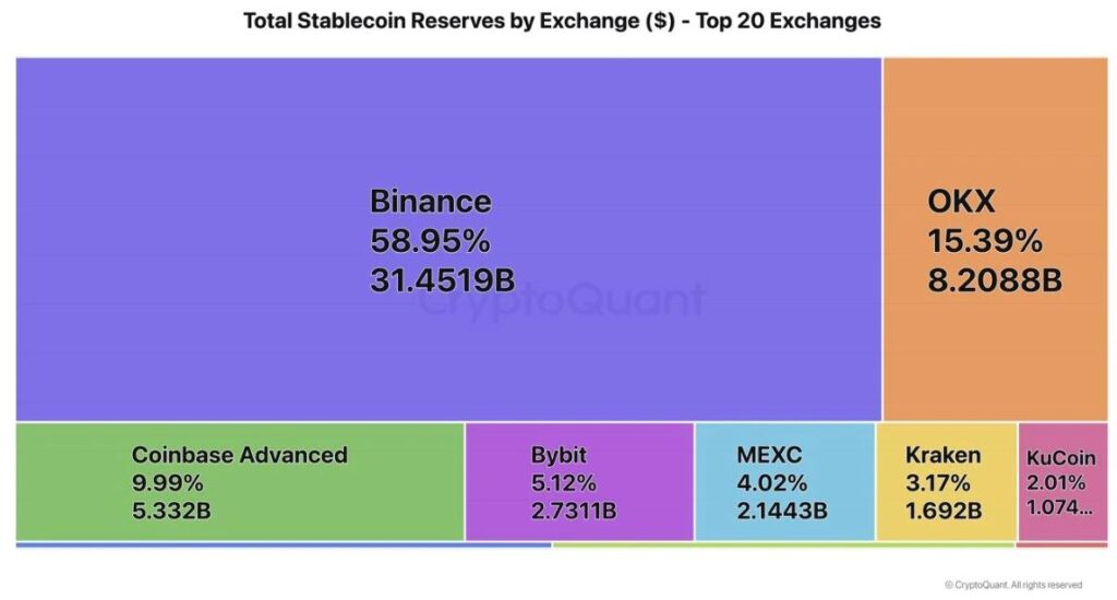 Having many users and Binance’s big stablecoin reserves ensures that people can quickly buy and offer assets. Due to the fact that of its continuous growth and strong existence in the market in 2025, Binance remained at the top of the industry. Implications for Market Dynamics and Investor Methods in the Crypto EcosystemHow strong Binance is in having the most stablecoin reserves and incoming Bitcoin deposits seriously impacts the entire crypto world. When stablecoin reserves are constant and big, it makes it simpler for the market to respond, which is necessary for delivering sufficiently steady prices. In addition, a great deal of Bitcoin deposits on the exchange reveals self-confidence amongst investors. It likewise indicates Binance will continue as a leading platform for crypto activity. A large quantity of liquidity and properties in one platform may lead to more efficient markets, but it likewise makes policy essential to control any risks that the platform might pose. Exchanges like OKX and Coinbase Advanced, which hold less stablecoins, still help increase liquidity and keep competitive conditions for markets. All of these deals integrated aid form the structure of the global cryptocurrency economy.Knowing Binance’s effect can assist investors and traders in enjoying market patterns and finding possible issues. If many inflows and a big quantity of stablecoins are held, it may imply there is more trading, and the rate could increase. But depending heavily on simply a couple of exchanges raises doubts about how decentralized and resistant the market is for threat management.Binance’s Market Management Continues to Drive Liquidity and Confidence in 2025All in all, Binance’s strong hold on stablecoin reserves and high volume of Bitcoin purchases in 2025 suggest that it is the primary force driving market conditions and the choices of financiers. For this factor, Binance is most likely to play a big role in shaping and holding cryptocurrencies stable soon.The post Binance Leads 2025 Inflows with $180B, Dominating Crypto Markets with 59% of Stablecoin Reserves and the Greatest Bitcoin Deposits– CryptoQuant Insights appeared very first on Coinfomania.