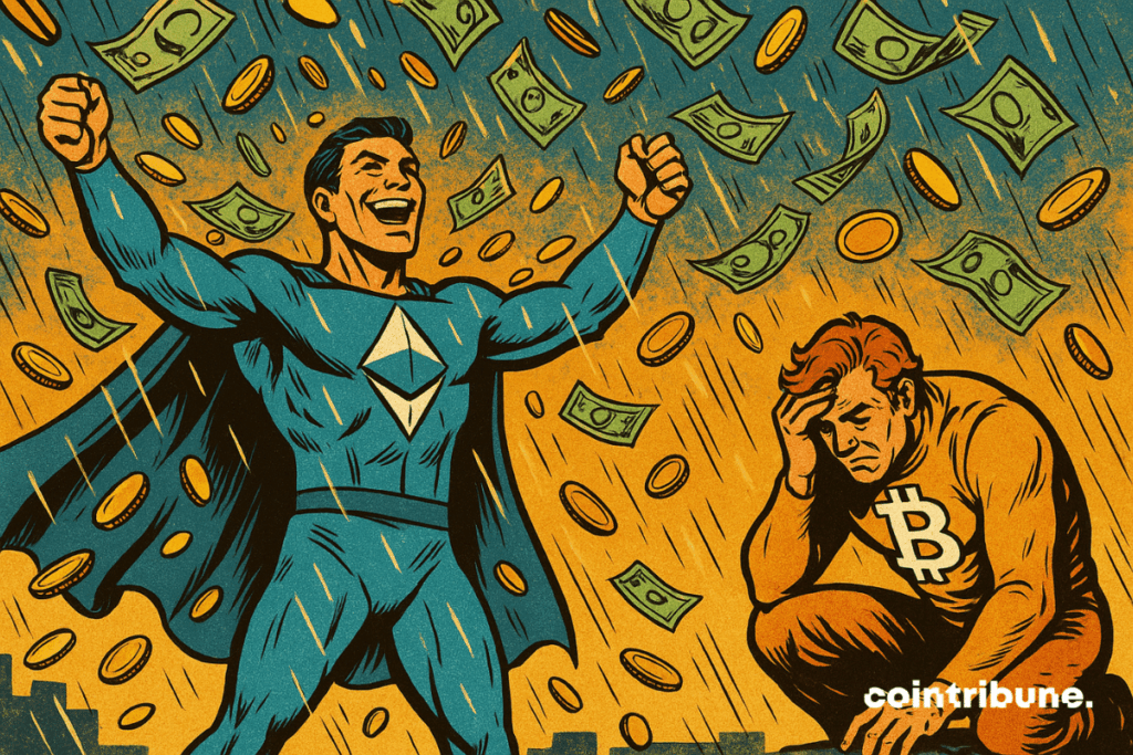 The crypto universe has never lacked incredible moments. But this time, it is the Ether ETFs that steal the spotlight. Far from being just a simple financial product, they crystallize an essential dynamic: the institutionalization of Ethereum. With a series of capital inflows nearing one billion dollars, a wave of euphoria is sweeping throughout the markets. And this might well be just the beginning. A dynamic that does not weaken: 15 days of huge inflows Since May 16, Spot Ether ETFs have shown a continuous series of 15 days of inflows. A raw figure? $837.5 million in three weeks. An achievement, but above all a strong signal: investors’ appetite for ETH crypto is no longer just speculation, it enters a logic of structured accumulation. At a time when Bitcoin struggles to maintain its course, with $346.8 million outflows on its ETFs at the end of May, Ether plays the stability card. This performance alone accounts for 25% of the total net flows since the launch of Ether ETFs in July 2024. According to data aggregated by Farside, if the trend continues one more week, the symbolic $1 billion mark might be crossed, consolidating Ether’s status as an alternative safe haven to BTC. This interest finds a direct echo in the spot market: +31% in one month, with a price currently flirting around $2,490. The market seems to be discovering Ether with the interest of a collector finding a Picasso at a flea market. Towards a new historic peak for ETH crypto? Technical indicators are not left behind. Analysts like Crypto Eagles mention a fractal of gold in mirror of Ether’s current behavior. In short: a price structure observed on gold over several years seems to be repeating today on ETH, suggesting a potential rise towards $6,000 in the coming months. This is not just a maximalist dream. In November 2021, Ether already reached $4,878. If macroeconomic conditions support and adoption continues to climb, it would not be unreasonable for this limit to be shattered. Specifically as the impending arrival of staking ETFs, enabled thanks to regulatory bypasses by companies like REX Shares, could add a layer of yield that is sorely lacking in existing ETFs, as Cointelegraph reports. The integration of staking into Ether ETFs would not be insignificant: it would generate passive income while maintaining exposure to the token, a formidable mix for asset managers. In short, an evolution capable of truly shaking things up. An institutional validation, a quiet revolution Beyond numbers and bullish promises, this rally of Ether ETFs highlights a fundamental but silent shift: crypto is entering adulthood. What was long a playground for cypherpunks and speculators is becoming a legitimate asset for global savings managers. The ripple effect could strengthen. Increasing adoption of Ether ETFs by pension funds or insurance companies could further move ETH crypto into the global financial landscape. Because where millions are injected, billions follow. The current success of Ether ETFs is therefore not just a market anecdote: it is the sign of a shift. That of a crypto asset that stops being “alternative” to become essential like BTC.